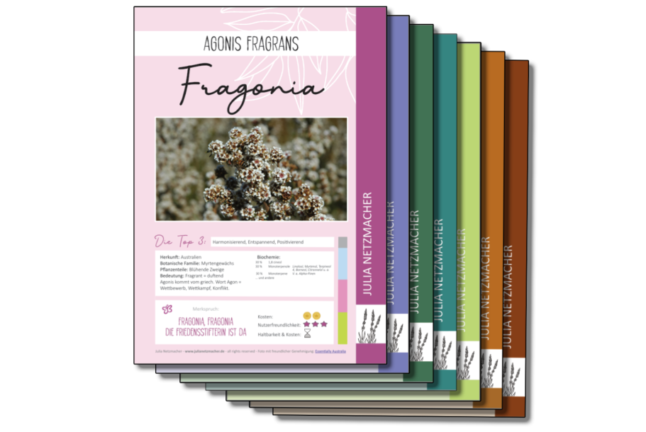 Jedes 4-seitige PDF fasst die wichtigsten Informationen, geeignete Anwendungsformen, bekannte therapeutische Eigenschaften und traditionelle Einsatzgebiete gemäß der FRANZÖSISCHEN, wissenschaftlich-medizinischen Aromatherapie zusammen.